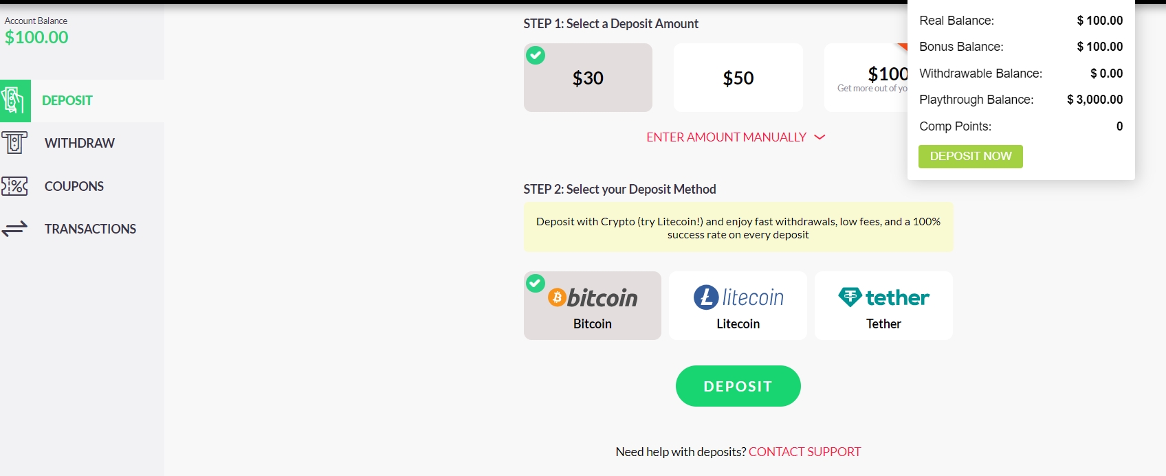 Step 2: Enter the No Deposit Bonus Code