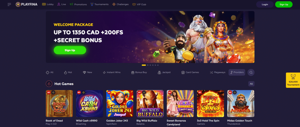 Step 1: Visit the Playfina Casino website and sign in to your account or create a new one if you are a first-time player.