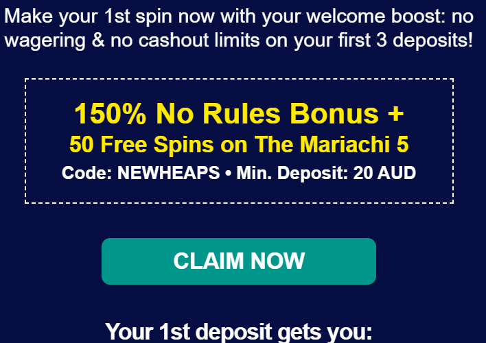 Weekend Reload Bonus. Receive a 50% bonus of up to $300 and 150 free spins on the Aloha King Elvis slot game. The bonus requires you to make at least a $20 deposit and comes with 40x wagering requirements. The maximum bet size available for wagering is capped at $5.